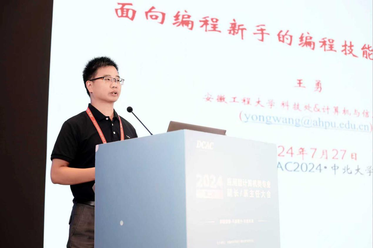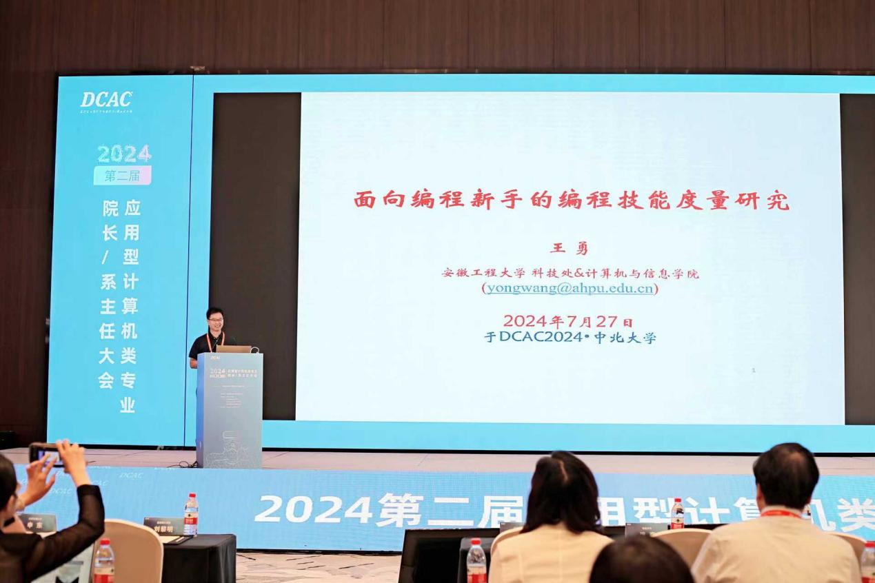 为了推动高校计算机类专业内涵建设,构建特色化应用型人才培养体系,提高教育教学质量,2024年7月25日至28日全国高等学校计算机教育研究会在山西省太原市召开“第二届应用型计算机类专业院长/系主任大会(DCAC2024)”。会议主题为“积极探索、不断提升、共创未来”,由中北大学承办。我院教授王勇应邀参加第二届应用型计算机类专业院长/系主任大会(DCAC2024)并作主题报告。