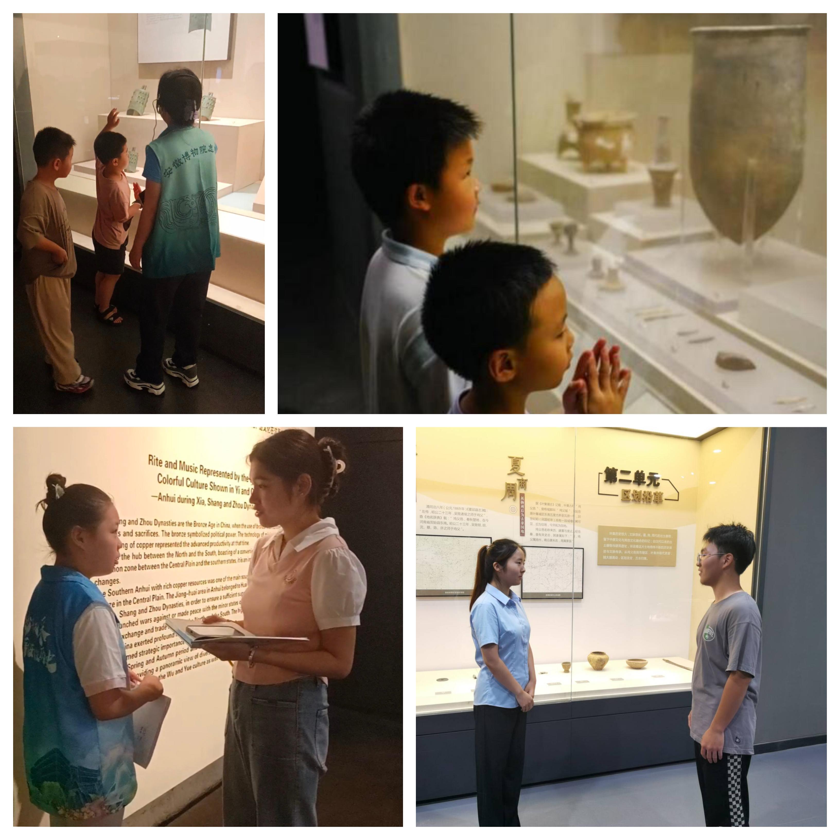 小队也见证了一批小学生走进博物馆,感受历史魅力,探索文化瑰宝。在讲解员的带领下,有近40名小学生畅游安徽博物院,与群舒青铜“小神兽”面对面,近距离欣赏楚大鼎等青铜国宝,在丰富多彩的馆藏中感受安徽悠久历史和灿烂文明,这也让博物馆成为学生的“文化殿堂”和“思政课堂”。