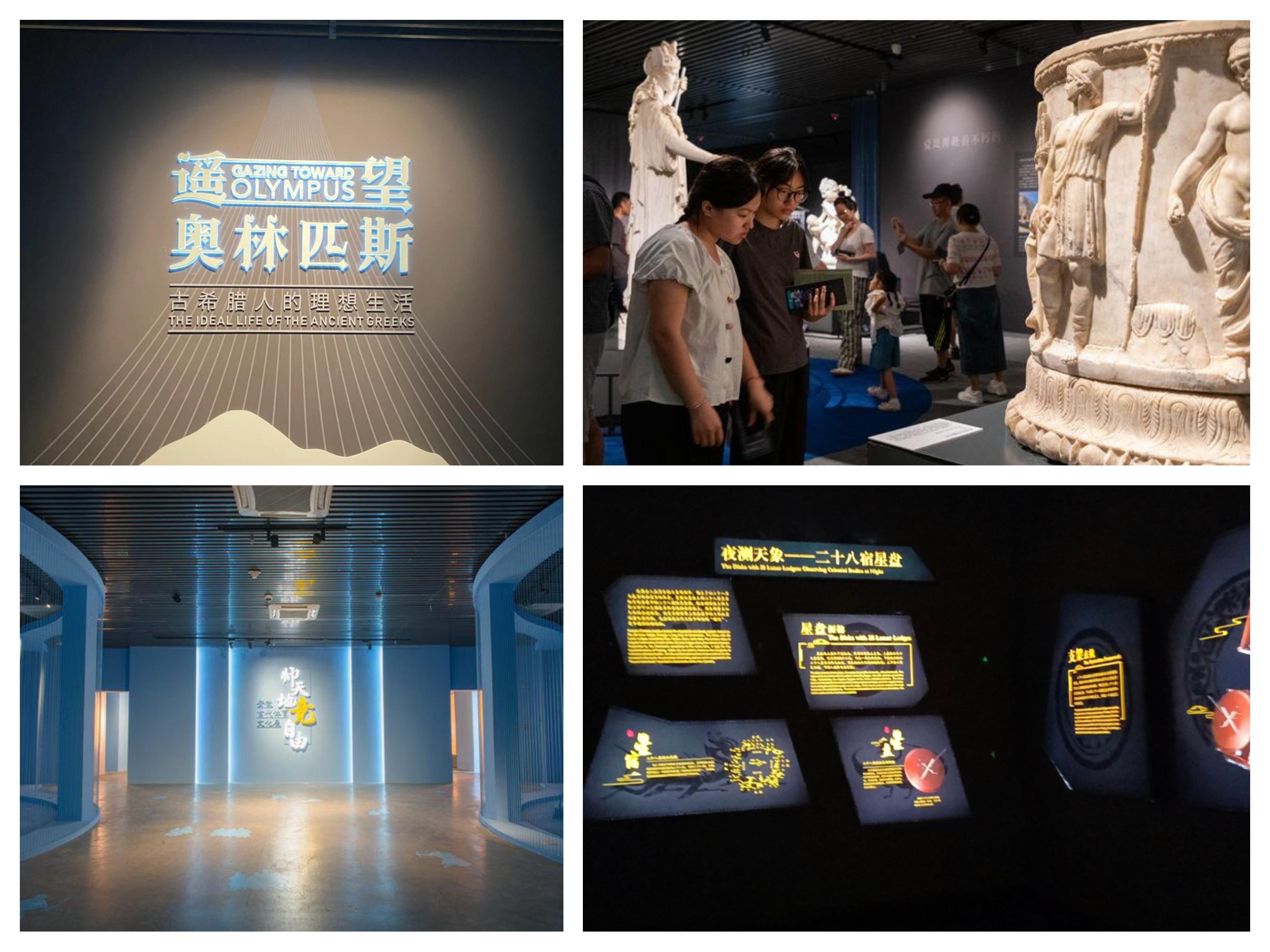 如安徽博物院结合奥运会所开办的”师天地竞自由——安徽古代体育文化展”;又如“遥望奥林匹斯——古希腊人的理想生活”展厅,深入感悟古希腊文明的光辉璀璨,讲解员身穿白色连衣裙,和特展的风格相搭配;还如汉代星空专题展厅,展厅内采用黑暗环境加黄色灯光展开星宿知识介绍,营造星空氛围感。