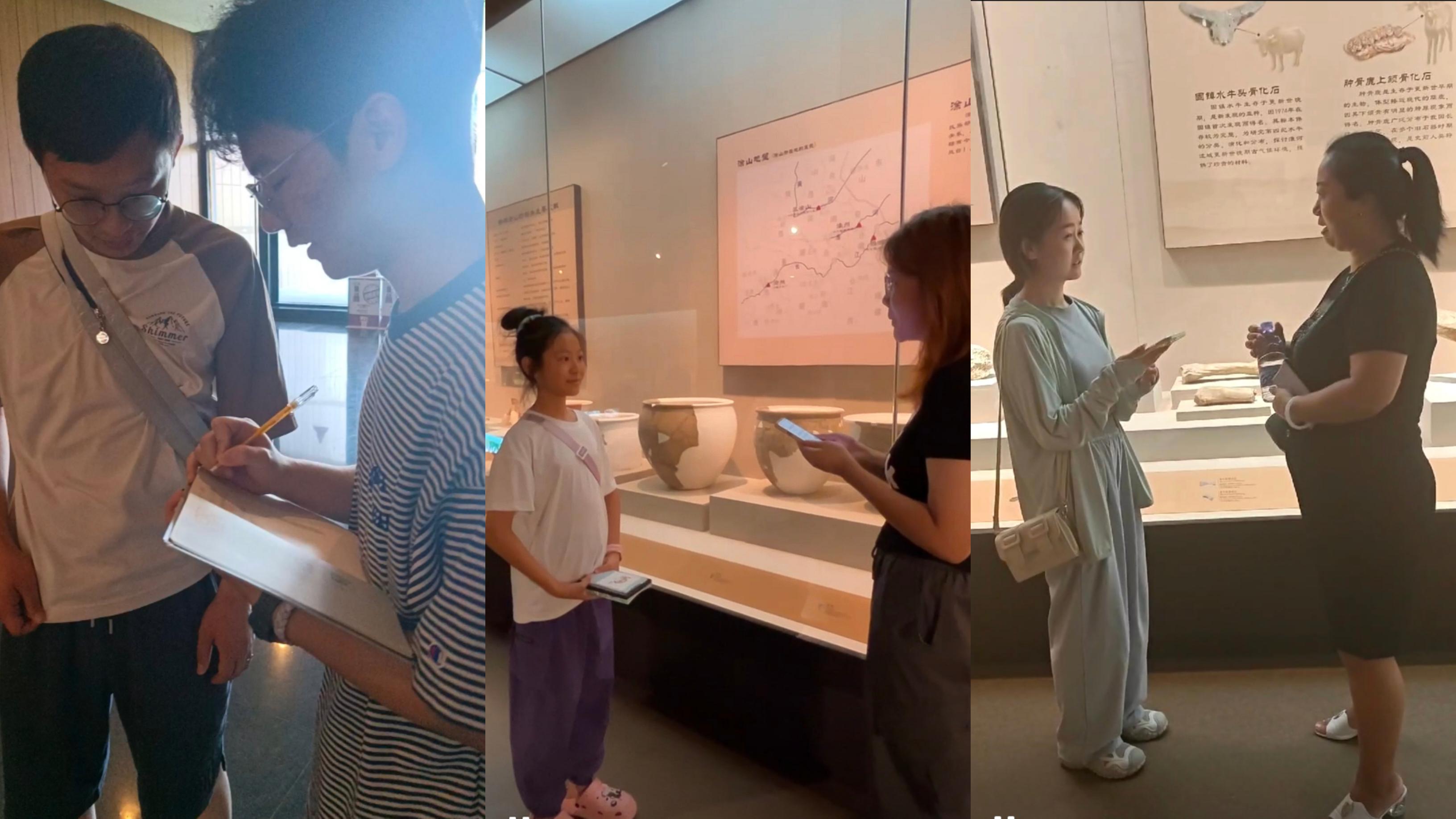 团队成员还采访到博物馆中“小志愿者”,他们正在为博物院内游客进行讲解,宣传博物院文化,与历史隔空对话。采访一位小志愿者时,她表示花两周时间去深入了解一个展馆的知识,为他人介绍历史背景和知识,是一件很有意义的事情。