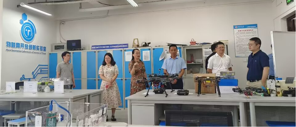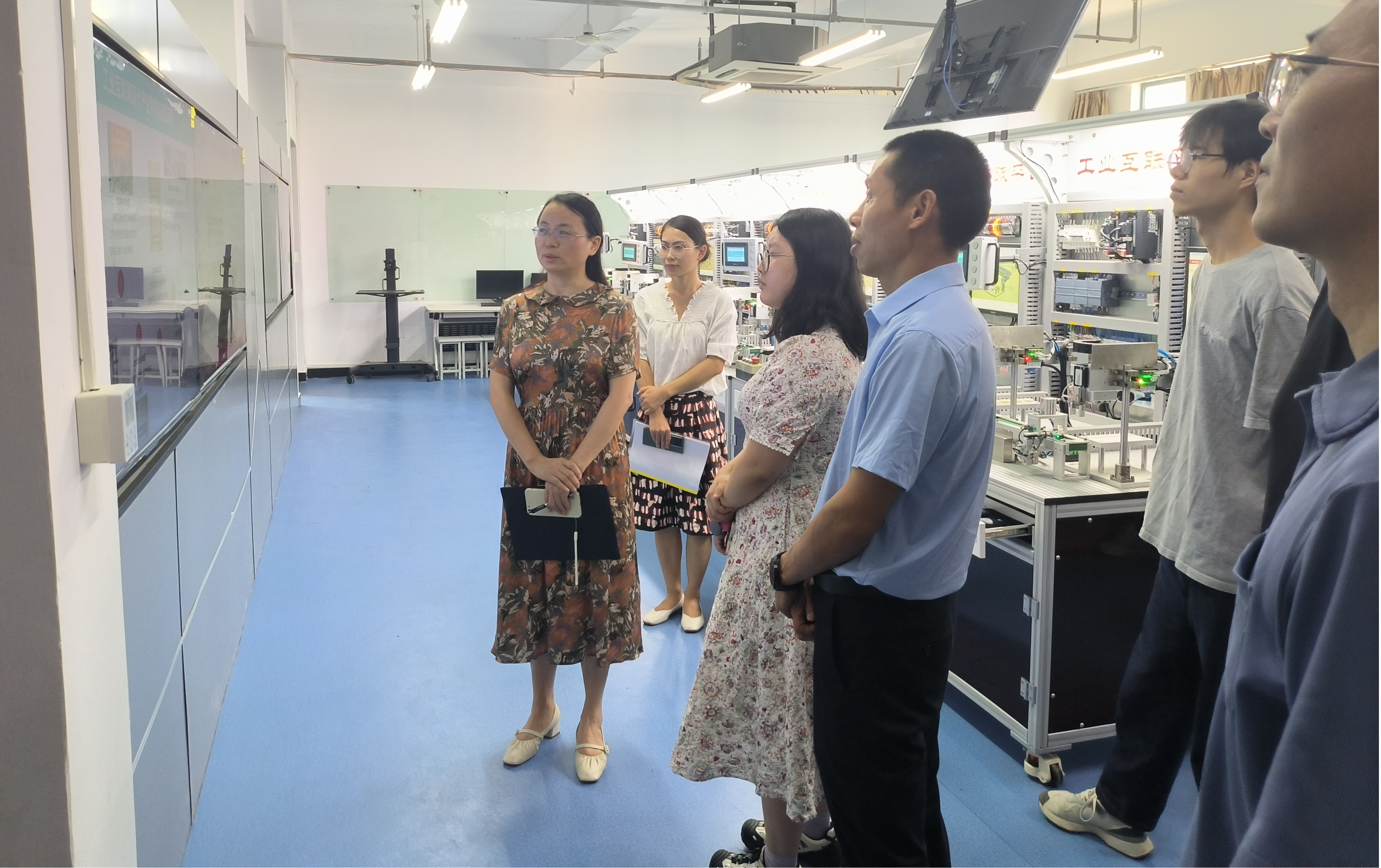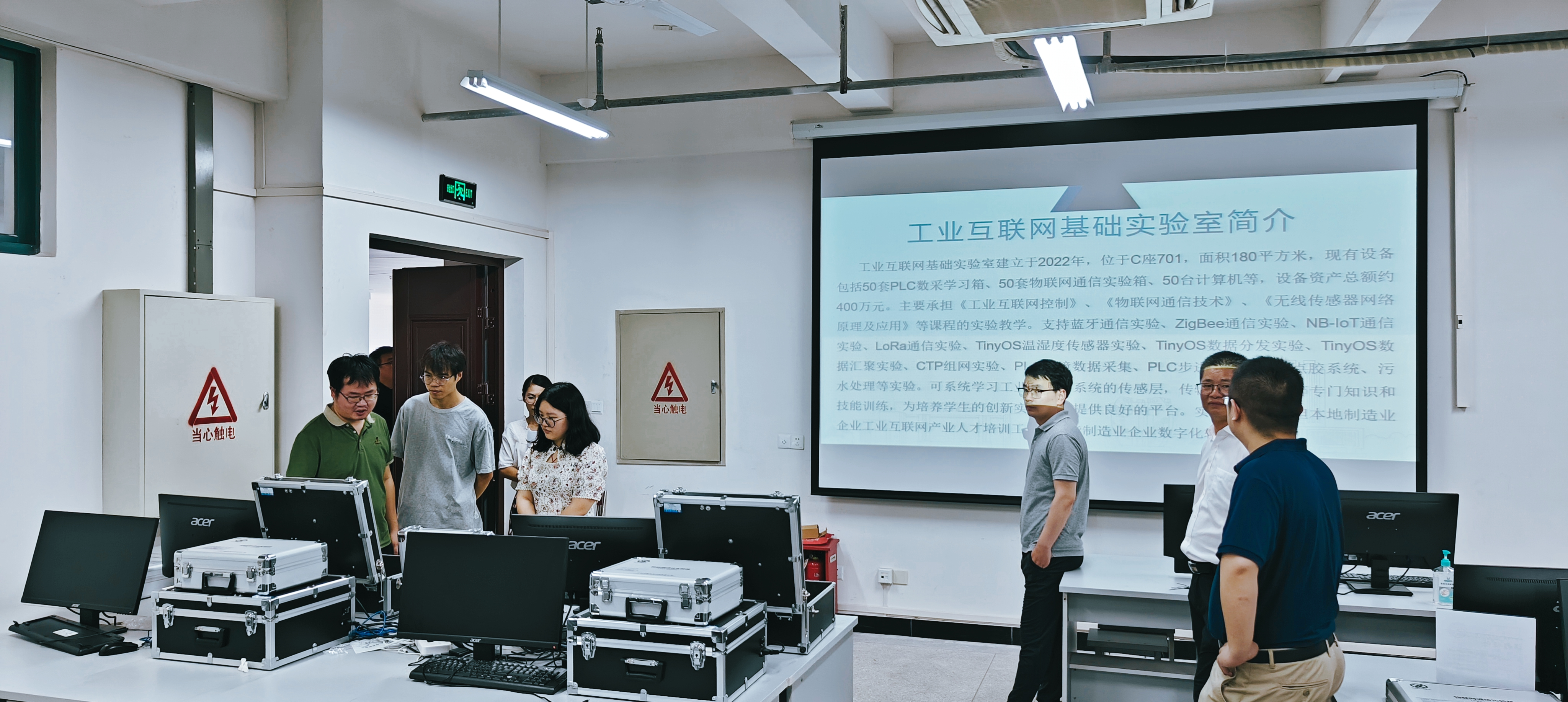 随后,领导专家们还实地考察了工业互联网基础实验室、大数据实验室、数据采洗标实验室、物联网创新开放活动室,陶皖教授、陈蒙博士等工业互联网团队教师分别介绍了实验室基本情况和校企合作情况、演示了工业互联网实验操作。