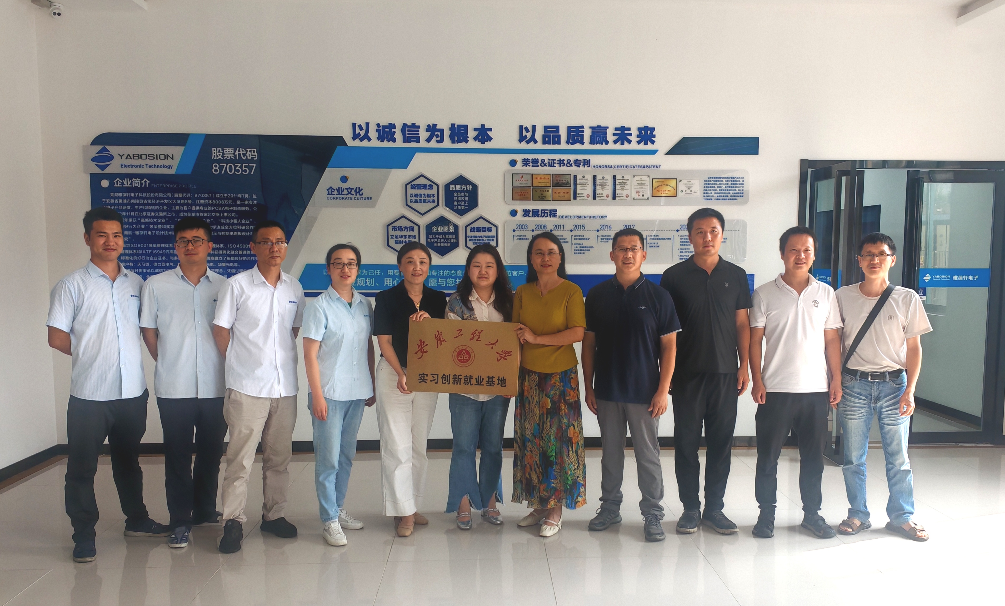 随后,双方正式签订了校企合作协议书。根据协议,双方将共同筹建“RayBetApp官网下载 实习创新就业基地”,并在大学生实习实践、创新能力培养、科学研究、社会服务等方面展开深入合作。紧接着,双方举行了揭牌仪式,标志着“RayBetApp官网下载 实习创新就业基地”和“芜湖雅葆轩电子科技股份有限公司实习创新就业基地”正式挂牌成立。这不仅是双方合作的重要里程碑,也是推动校企合作、产教融合的重要举措。