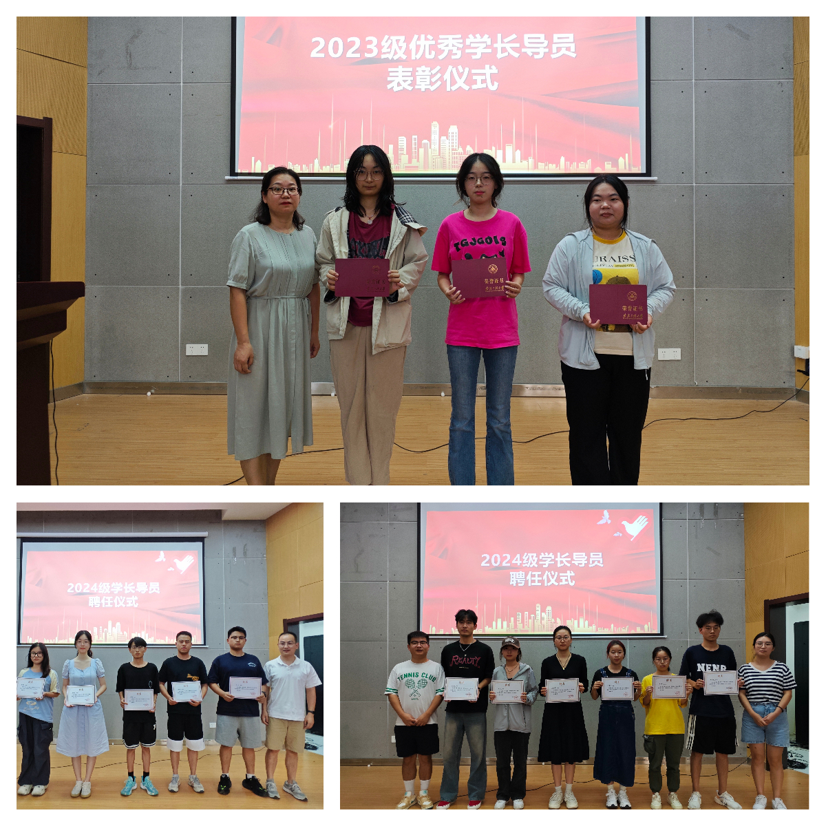 会上,学院对2023级优秀学长导员进行表彰,为2024级新生学长导员颁发聘书。学院志愿者实践中心负责人软件222张卓妍重点介绍迎新方案中的位置分布和工作职责,并对迎新志愿服务中的注意事项进行讲解。