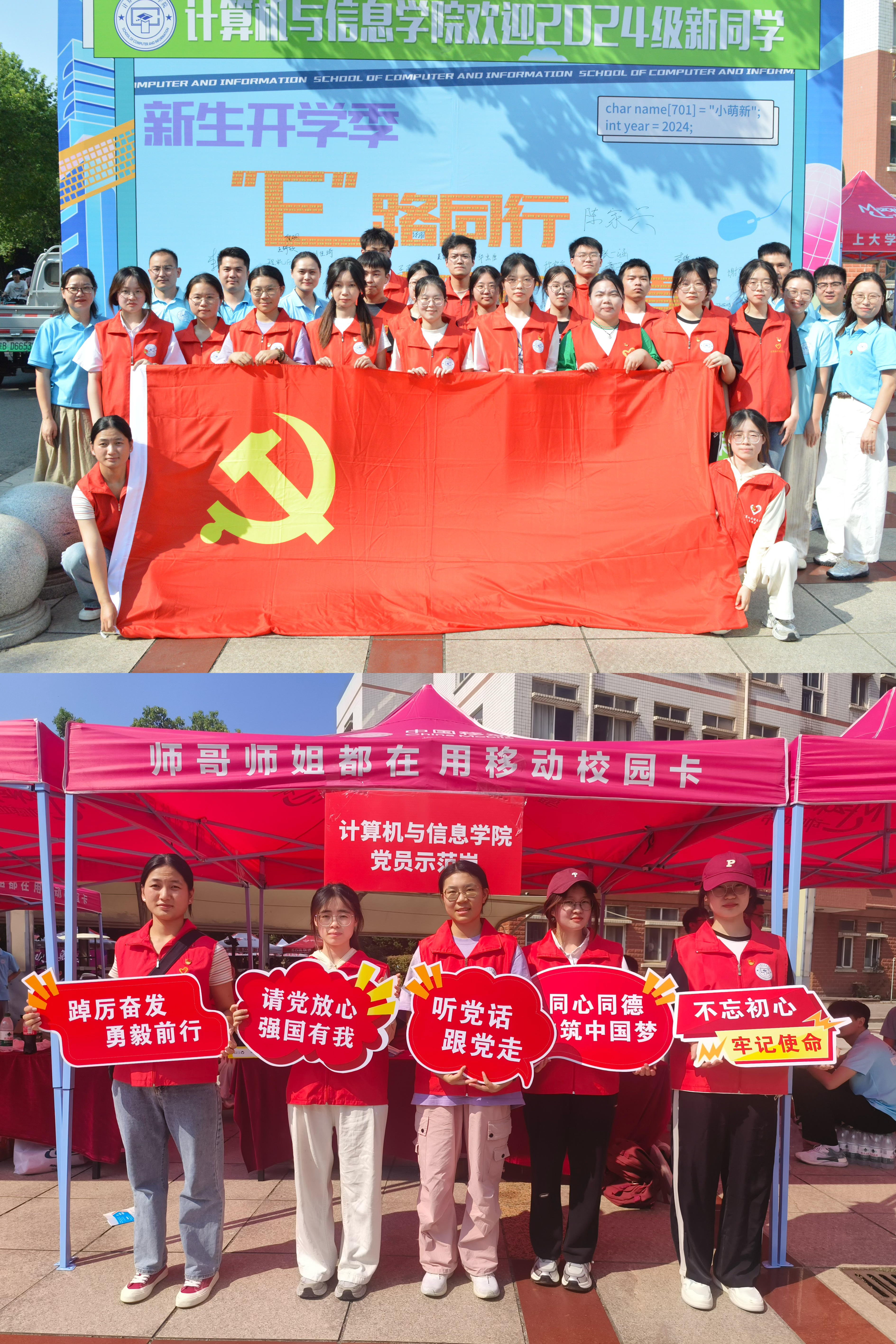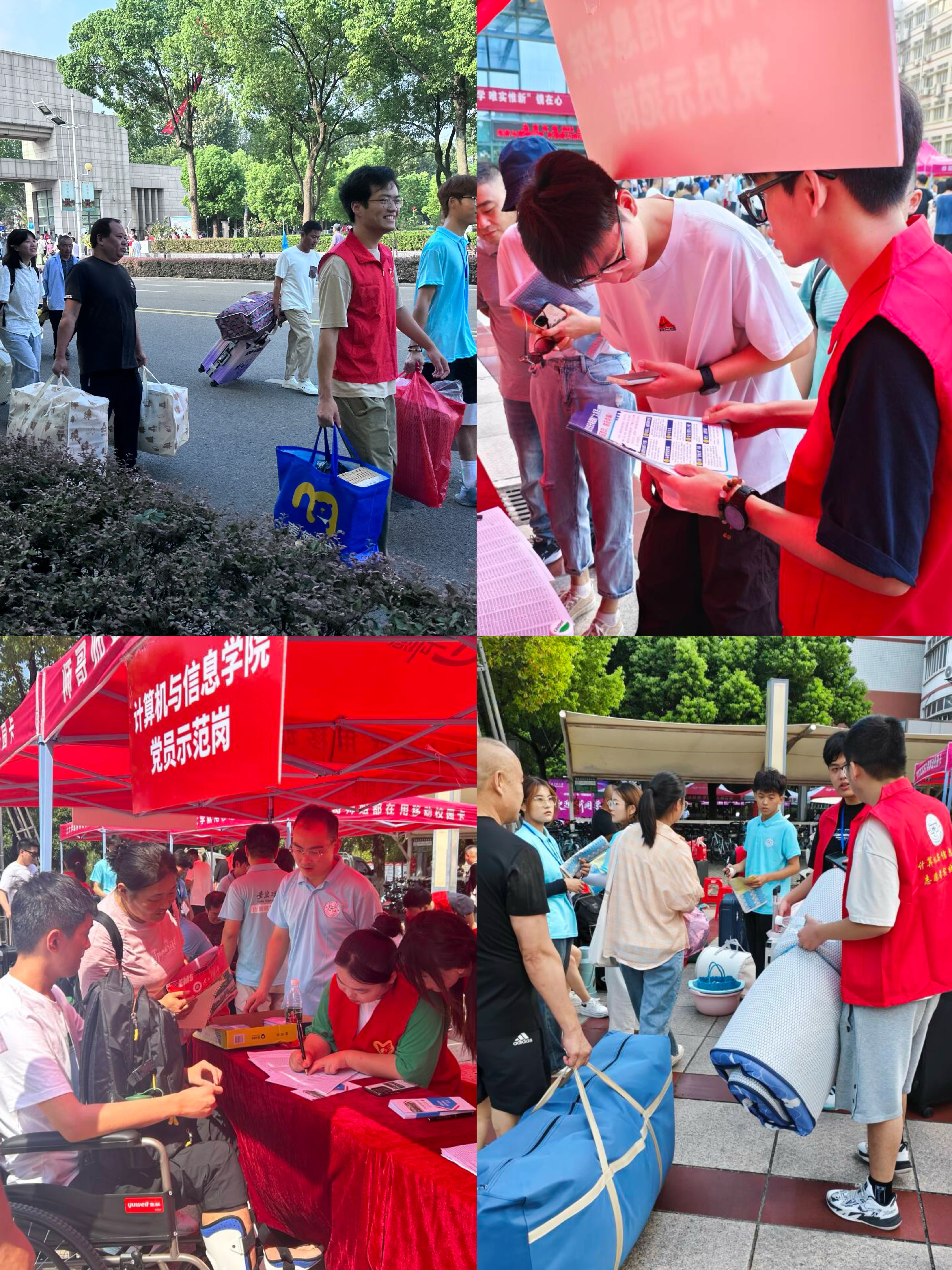 烈日炎炎,党旗飘飘,迎新服务热情似火;盛夏未央,党员先行,句句关怀沁润心田。9月7日,计算机与信息学院2024级新生在学院党员志愿服务队的帮助和指引下,顺利到“家”。