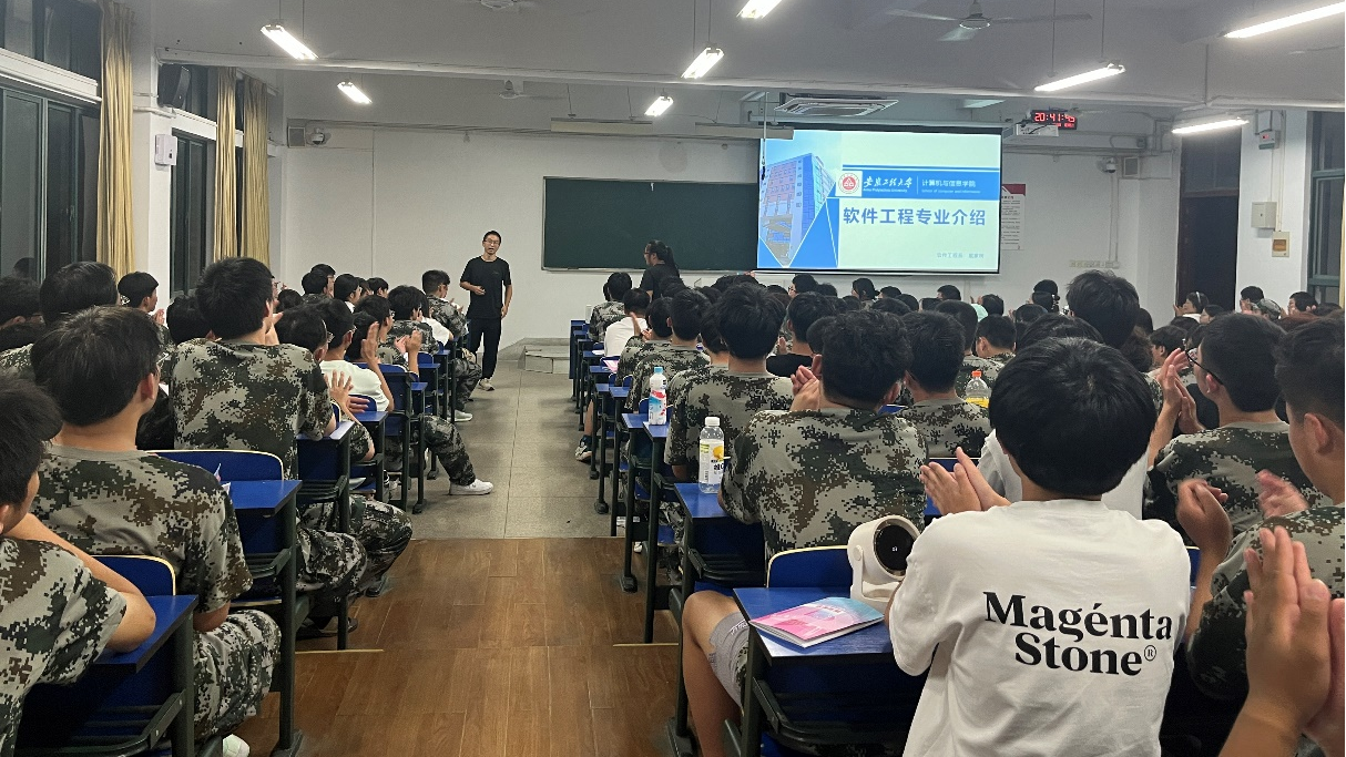随后,戴家树向新生们详细介绍了软件工程系的三位本科生导师和两位今年新入职的教师,并邀请他们分享学习经验和建议。老师们鼓励新生们“认真学习、科学安排生活、注重身体锻炼”,并为每位新生送上了充满期待和祝福的寄语。