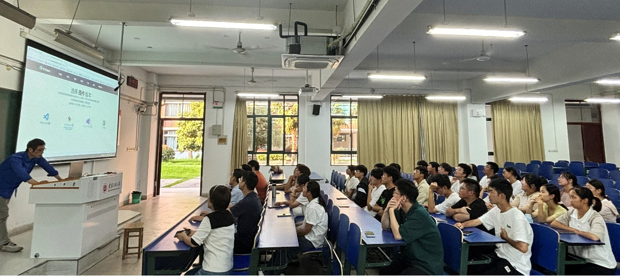 最后,活动室的指导老师汪国武、邹姗、齐斌、王陆林分别介绍了软件开发的各个阶段、学生的学习目标,职业方向,分享了当前社会和市场的需求,并作了入门指导。