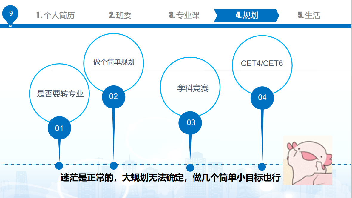 接着,包象琳以五位优秀学长学姐的学习规划路线和成果收获为案例,针对“我们应该如何学习”进行主题分享,并从学习、竞赛和生活等方面为新生给出建议。