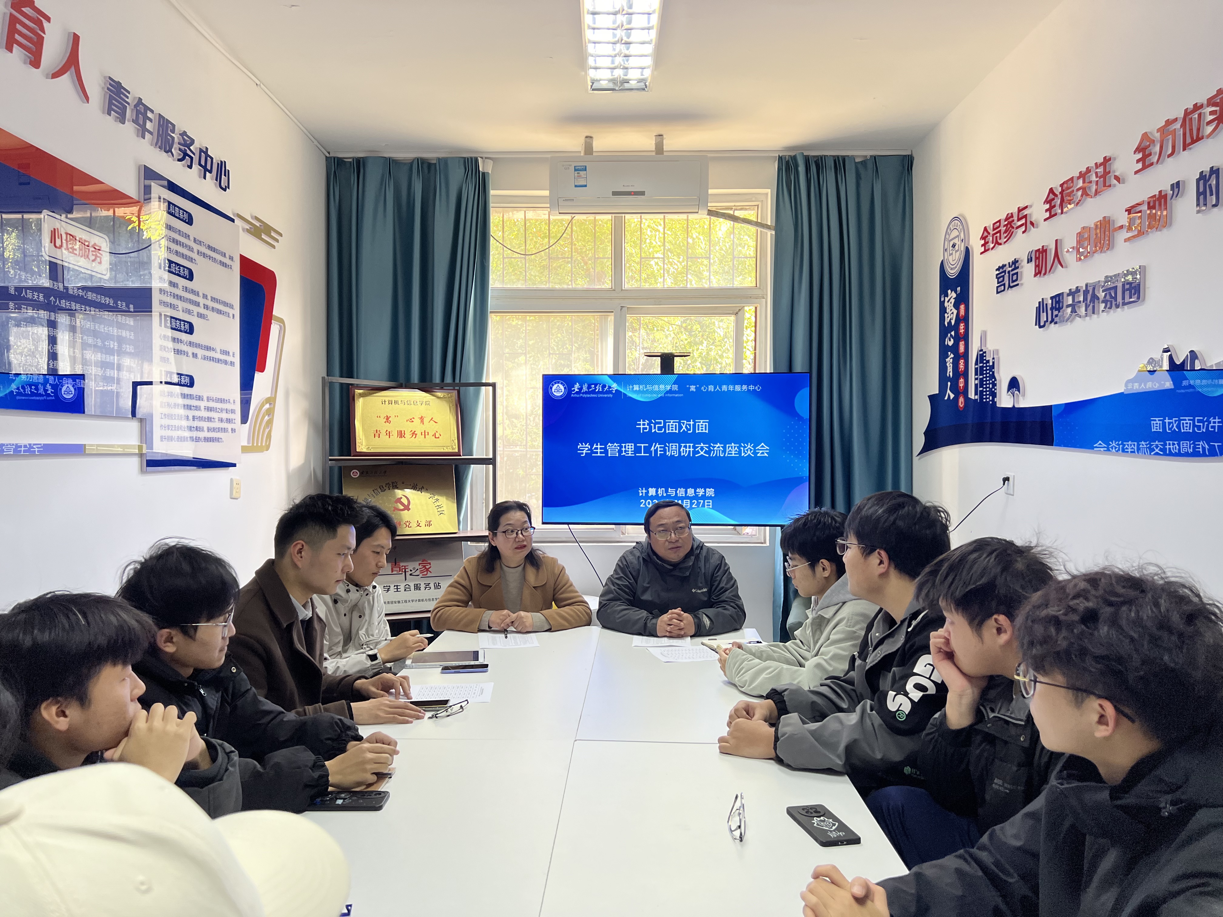 11月27日,计算机与信息学院召开学生管理工作调研交流座谈会。本次座谈会旨在搭建师生沟通平台,深入了解学生在学业、生活中遇到的实际问题,更好优化教育教学和管理服务工作,力求构建一个更具支持性、回应性和成长性的学习生活环境。学院党委书记李卫东、党委副书记孙德茹、辅导员陈涛、兼职辅导员季昭康、刁华彬以及各专业学生代表参加座谈会。