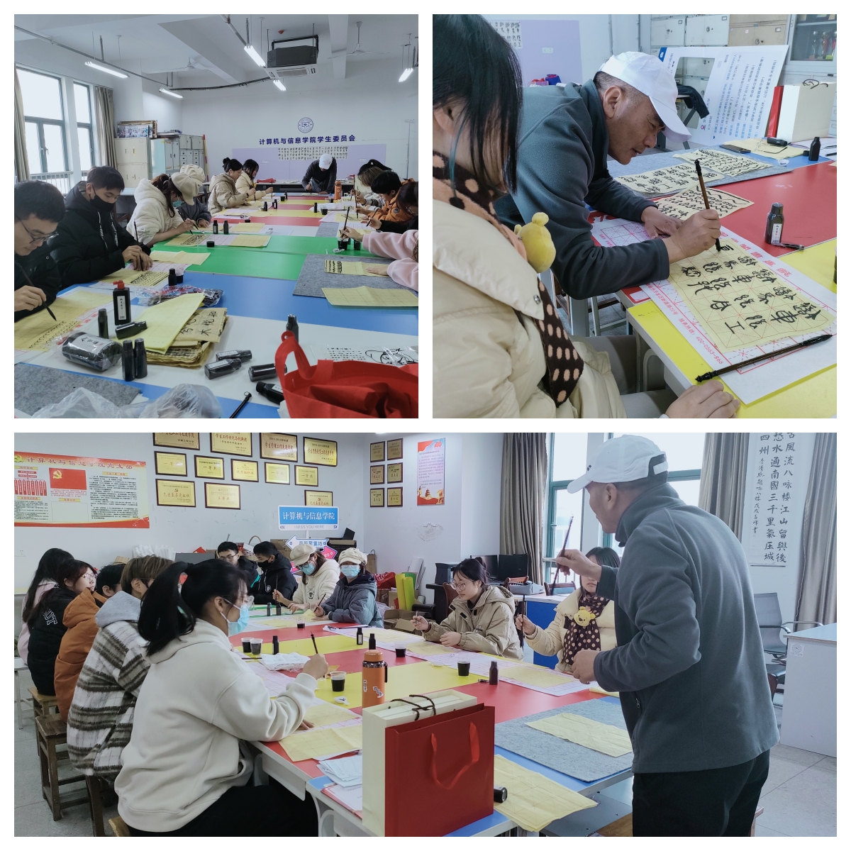 为传承和弘扬中华民族优秀传统文化,丰富学生精神文化素养和校园文化底蕴,11月27日下午,计算机与信息学院在C座505开展师生书法沙龙活动,学院退休教师周毅仁带领同学们共同感受中华书法的独特魅力。