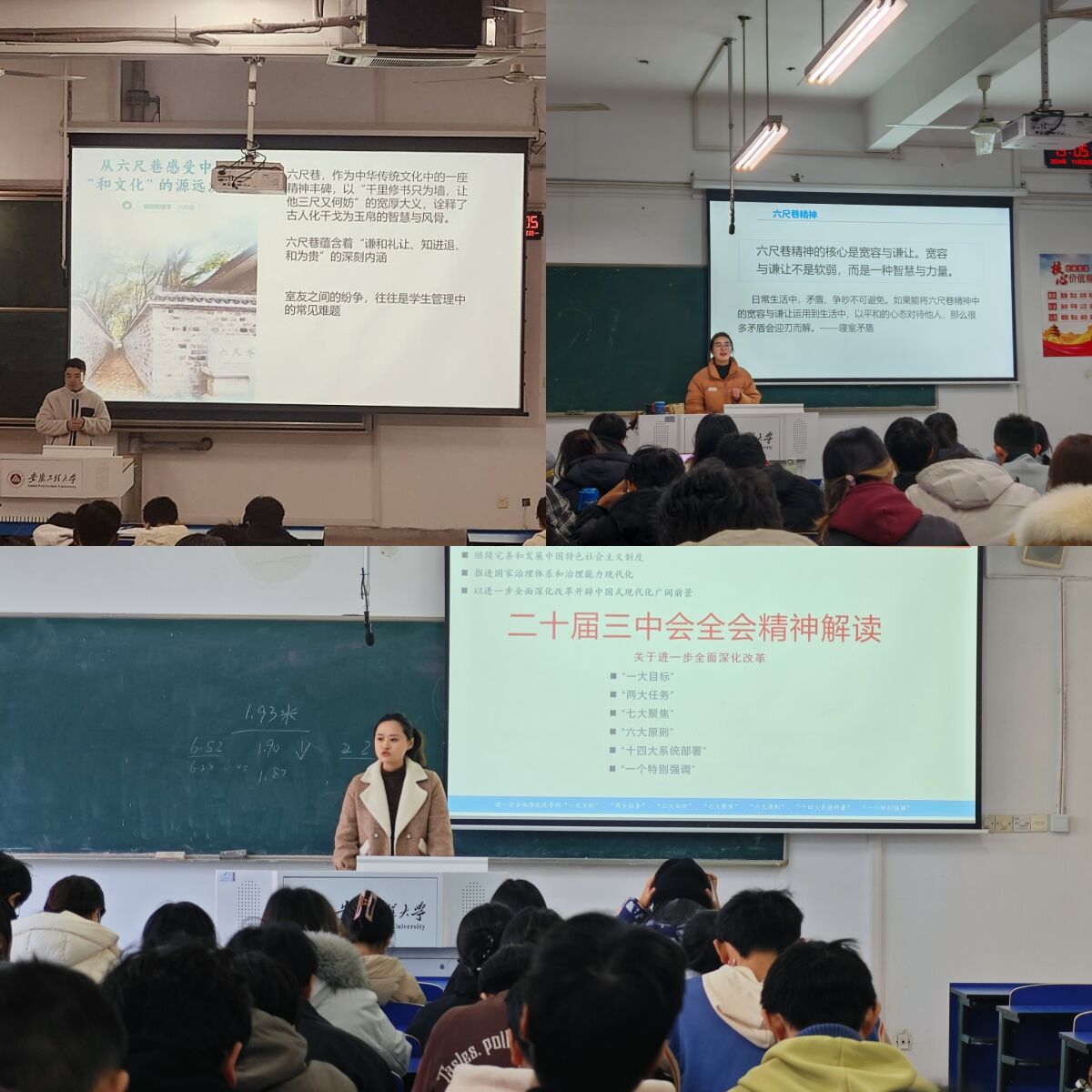 为深入学习贯彻习近平新时代中国特色社会主义思想和党的二十届三中全会精神,引导学生树立正确的世界观、人生观、价值观,扎实做好学生教育管理服务工作,计算机与信息学院各专业召开十一月份主题班会。