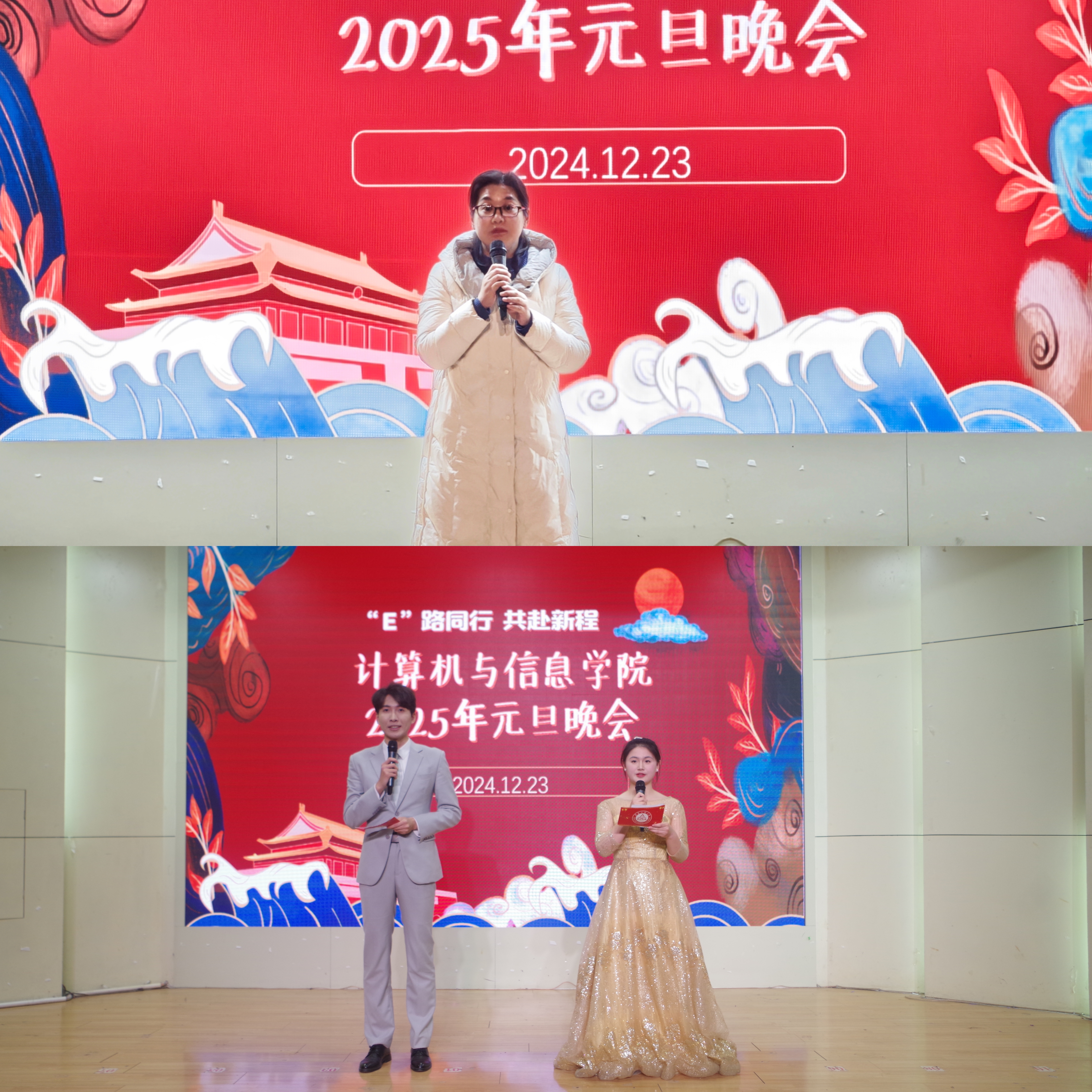 为热烈庆祝我校建校八十九周年,同时迎接充满希望的新一年,丰富校园文化生活,12月23日晚,计算机与信息学院在学术报告厅举办元旦晚会,学院党委副书记孙德茹、院团负责人孙力力、辅导员陈涛、周荣凤及300余名学生代表参加此次活动。