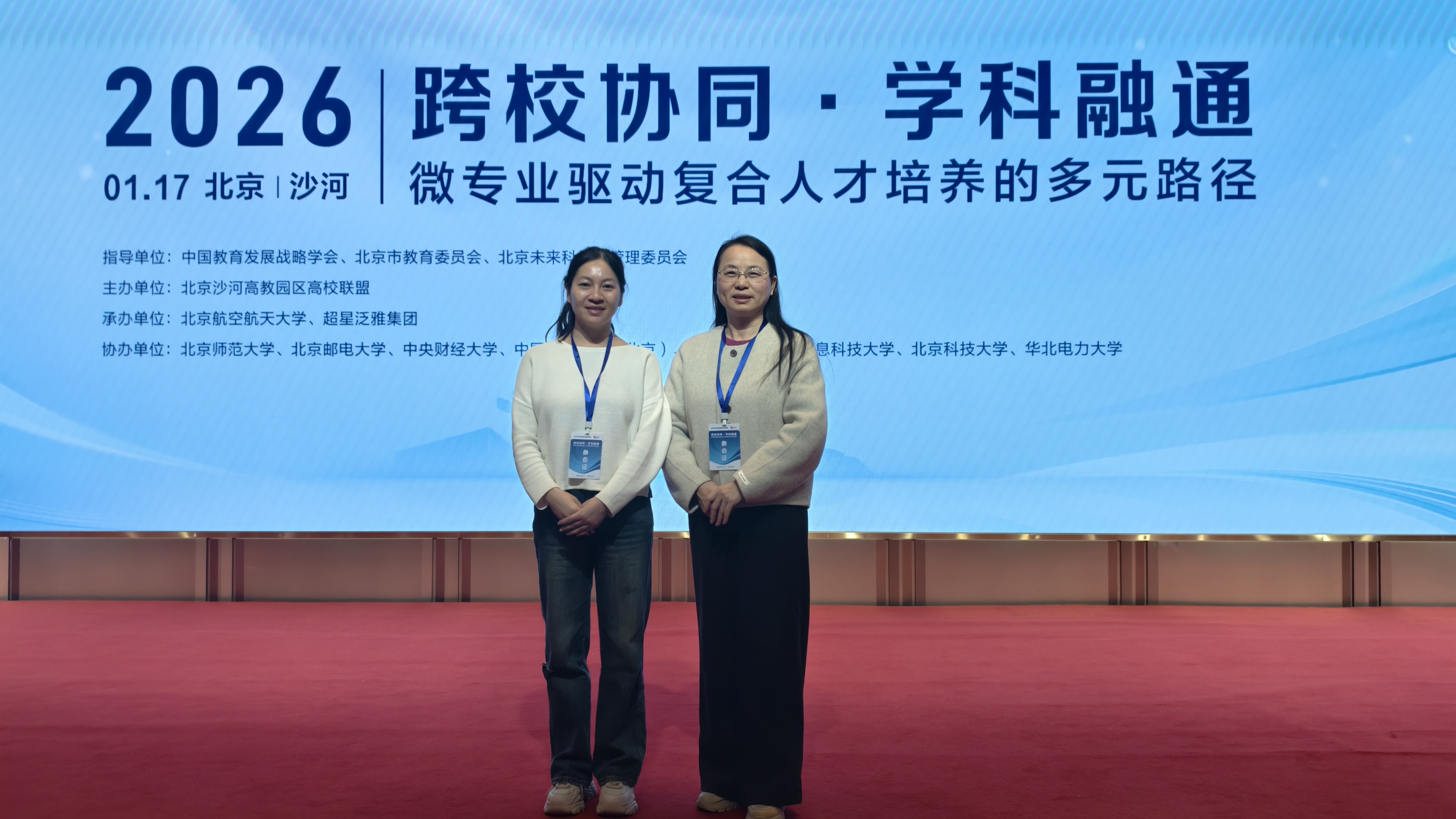 为深入推进学院微专业建设,探索复合型人才培养新路径,1月17日,计算机与信息学院副院长刘涛、教师武彦清参加北京沙河高校园区高校联盟主办的“跨校协同、学科融通——微专业驱动复合人才培养的多元路径”专题会议,来自教育部、北京市教委及多所高校的专家学者齐聚一堂,共商微专业建设经验。