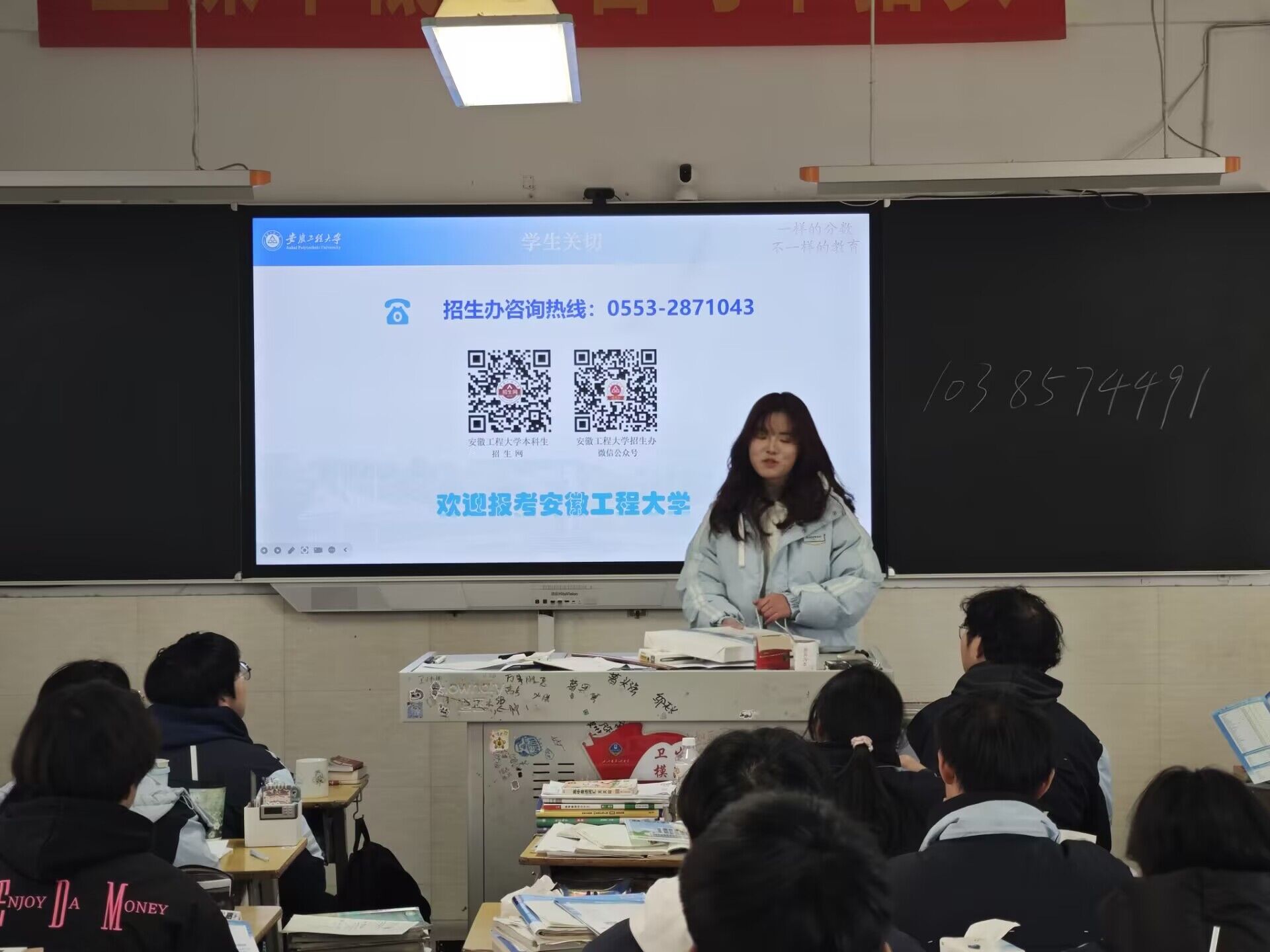 宣讲现场,团队成员与高三学子面对面交流,介绍学校学院的办学底蕴,结合自身学习体验分享专业概况与行业前景,帮助学子建立初步认知。同时,重点解读学校就业优势、校园文化及高三冲刺备考方法,以真实经历增强宣讲的针对性与说服力。互动环节,学子们踊跃提问,围绕专业选择、高考录取分数线、大学学习规划等问题咨询,团队成员耐心回应、给出合理建议,现场氛围热烈融洽。