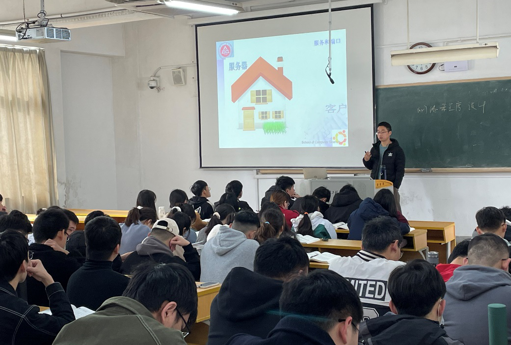 戴家树老师讲授《Linux操作系统与程序设计》公开课,2020级软件工程全体学生听授课程。他从回顾同一台机器内的进程间如何通信出发引入网络通信的概念说起,以拨打电话邮件为例阐述了基于TCP和UDP的两种通信方式,通过案例教学构建了客户端-服务器模式的网络通信程序设计。他在课堂上演示了编程方式,并带领学生快速进入程序设计的思维模式,加深了学生对于通信方式和过程的理解,教学效果收到了好的反馈。