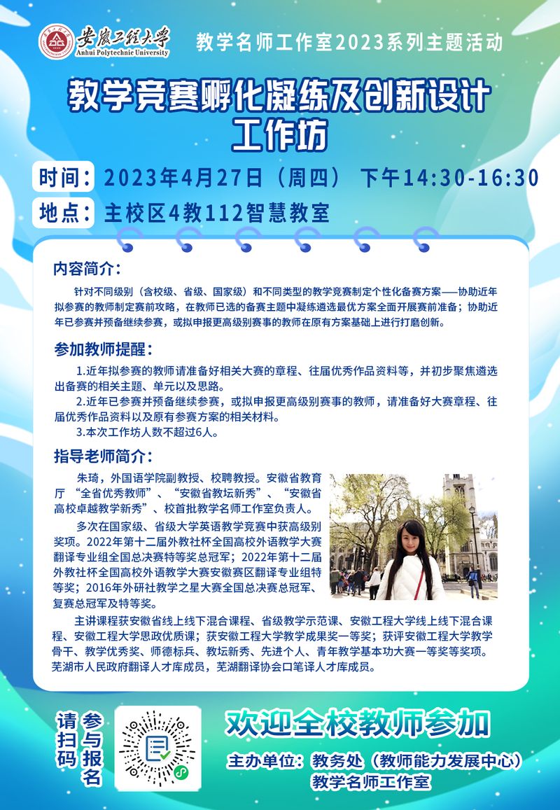 教学名师工作室2023系列主题活动预告---《教学竞赛孵化凝练及创新设计工作坊》