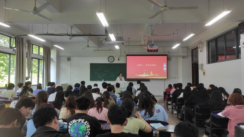 本次示范教学主讲教师是彭鸿雁教授,讲授内容为《毛泽东思想和中国特色社会主义理论体系概论》的第八章第一节“科学发展观的科学内涵”。彭老师为本次示范教学做了充足的准备,她首先带领学生回顾了上节课所学内容,紧接着抛出“什么是发展”这一问题引导学生思考;又通过“古希腊神话中的五个时代”和“中国古代循环论”的对比讲解,抛出“是什么决定人们形成不同的发展观念”这一问题,再次引发学生广泛讨论;从自身的进步与退步说明发展的价值标准不同,发展是一个价值预设的过程等;还讲解“什么是发展观”,通过思维导图的形式帮助学生梳理马克思主义发展观的基本观点,并运用案例教学讲述人民公社化运动在发展中忽略了什么,再度引发学生思考与讨论。整个课堂内容饱满,重点突出,气氛活跃。