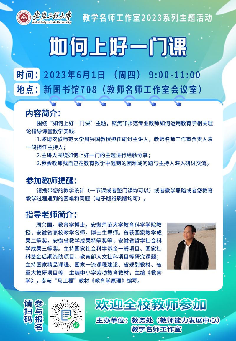 教学名师工作室2023系列主题活动预告---《如何上好一门课》