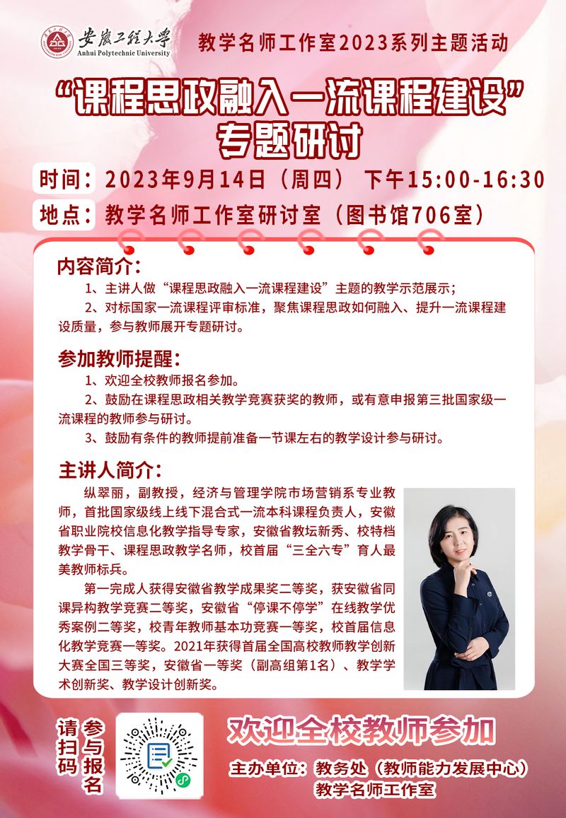 教学名师工作室2023系列主题活动预告---《“课程思政融入一流课程建设”专题研讨》
