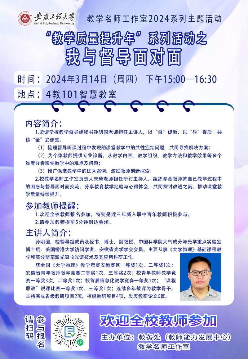 教学名师工作室2024系列主题活动预告---“教学质量提升年”系列活动之我与督导面对面