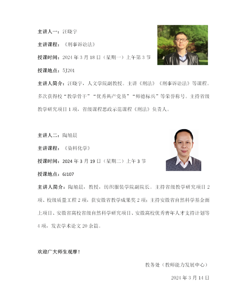 2023-2024学年第二学期【“金”彩一课系列活动】第二期预告(总第130讲)