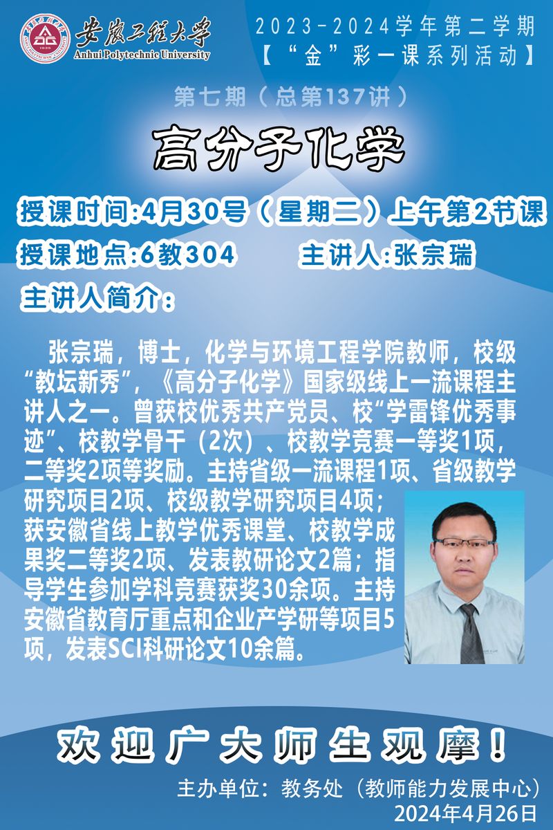 2023-2024学年第二学期【“金”彩一课系列活动】第七期预告(总第137讲)