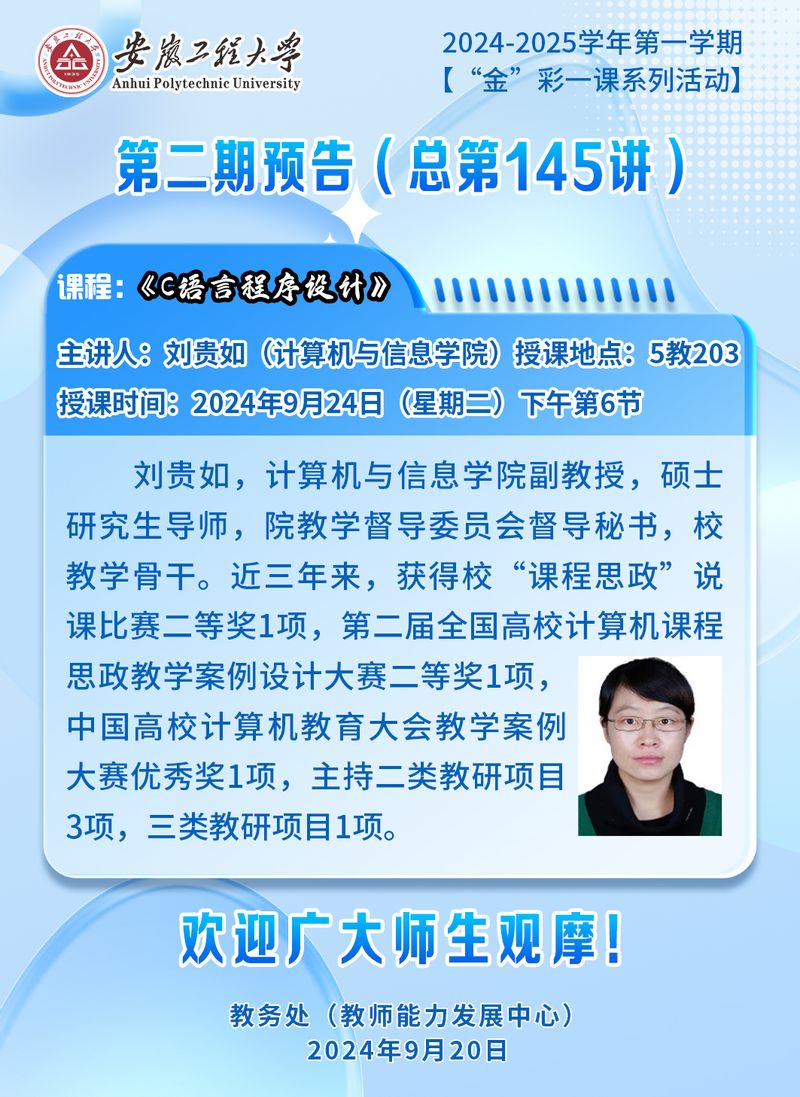 2024-2025学年第一学期【“金”彩一课系列活动】第二期预告(总第145讲)