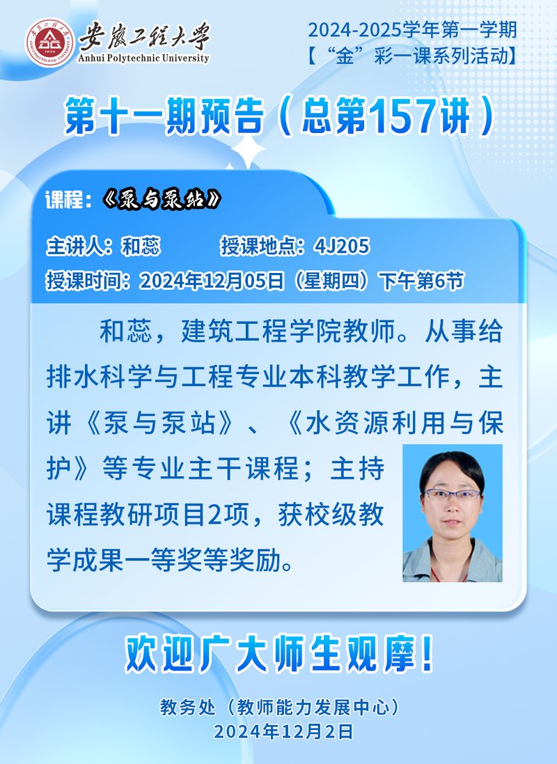 2024-2025学年第一学期【“金”彩一课系列活动】第十一期预告(总第157讲)