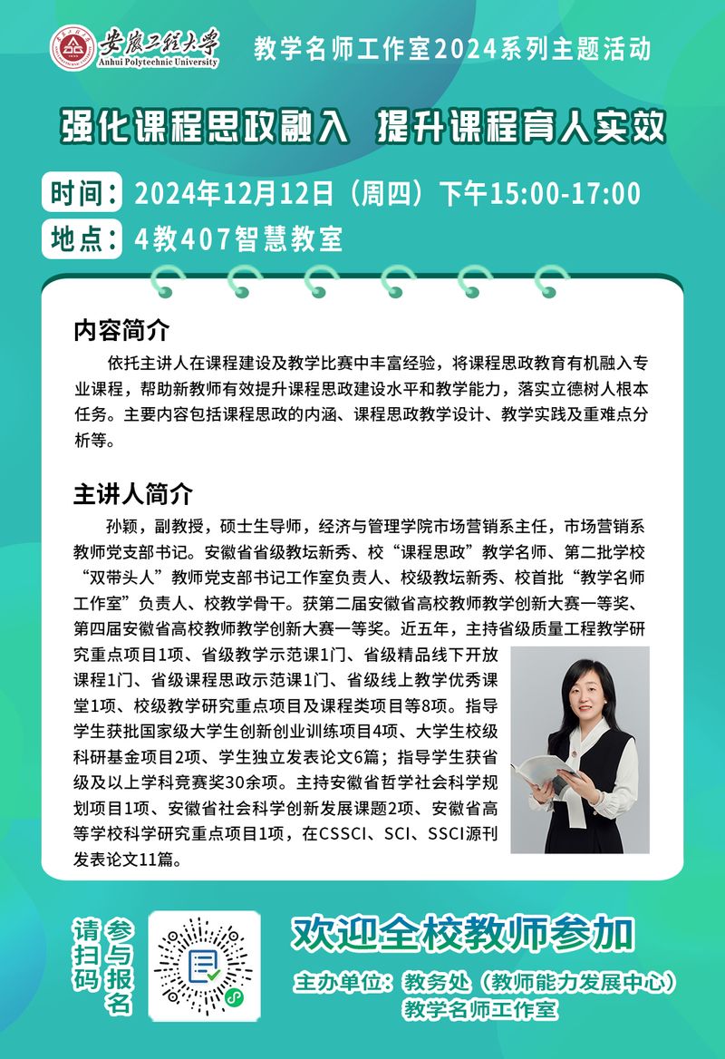 教学名师工作室2024系列主题活动预告---强化课程思政融入 提升课程育人实效
