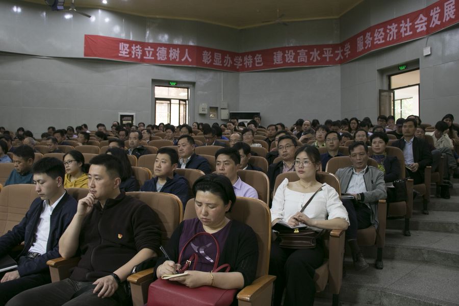 在校的学校党政领导、党委委员、纪委委员,科级及以上干部,各党支部书记,各学院教授委员会委员,学校教代会执委、工会委员会委员,党风党纪监督员、特邀监察员和全体辅导员300余人参加了会议。