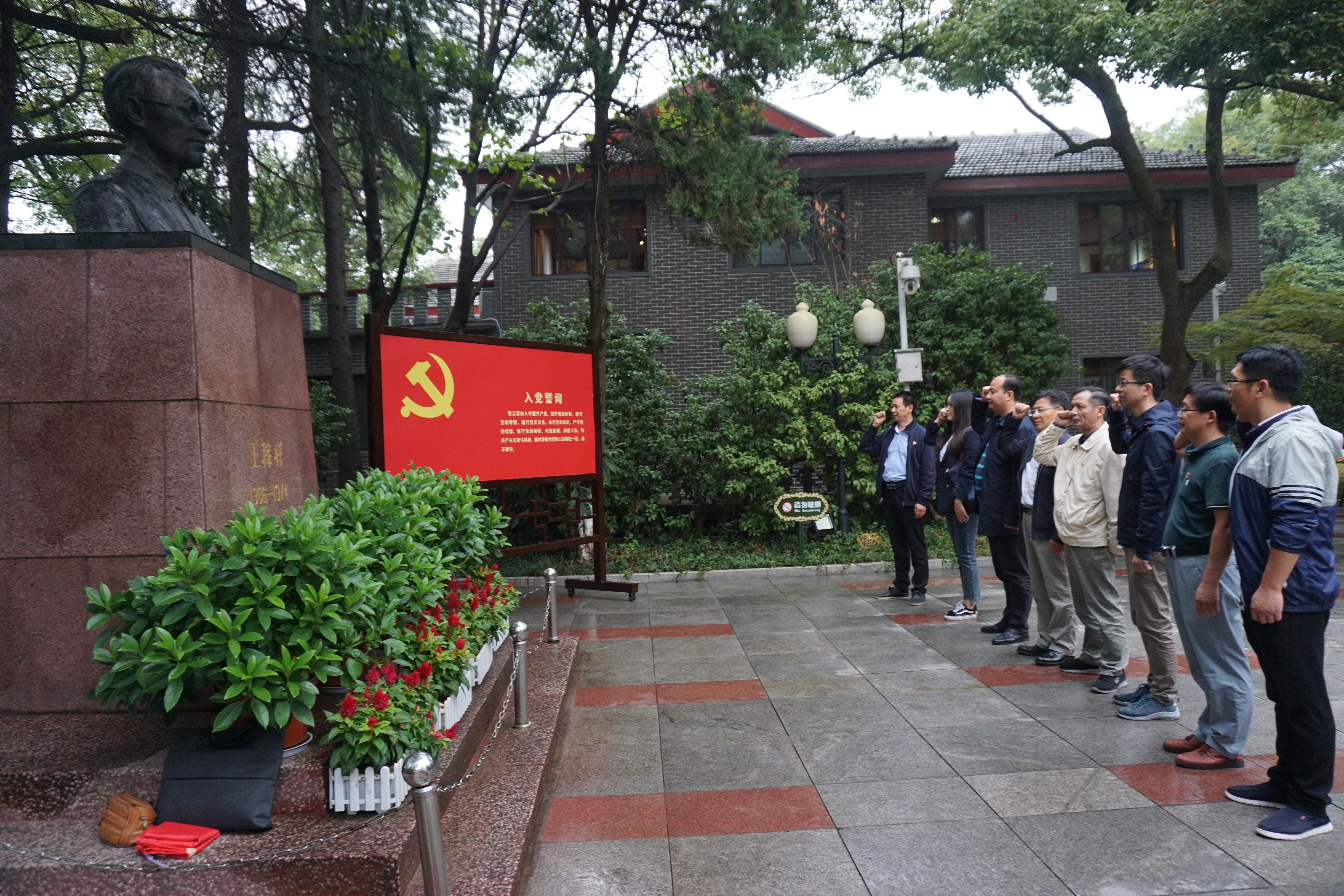 全体党员通过认真观看图片、文字、实物等弥足珍贵的历史文物资料,面对着庄严的王稼祥塑像,举行集体宣誓仪式,深情回顾了党领导人民艰苦卓绝进行革命斗争的光辉历史,深切缅怀了革命先烈的丰功伟绩和崇高风范,对在极其艰苦的战争环境下依然坚定革命理想的先辈们表达深深的敬意。