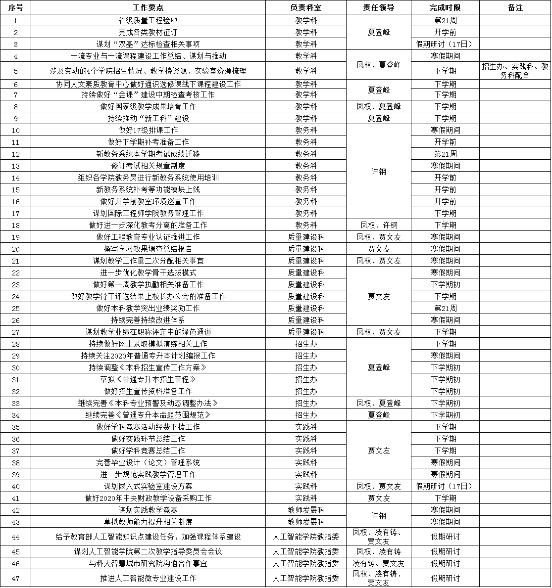 2020年教务处(招生办、教师能力发展中心)寒假及下学期初工作安排表