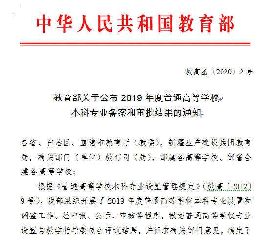 日前,教育部下发《教育部关于公布2019年度普通高等学校本科专业备案和审批结果的通知》(教高函〔2020〕2号),我校2019年申报的智能制造工程专业(专业代码:080213T)成功获得教育部备案和审批。截至目前,学校共有75个本科专业,其中工学专业40个,占比53.3%。