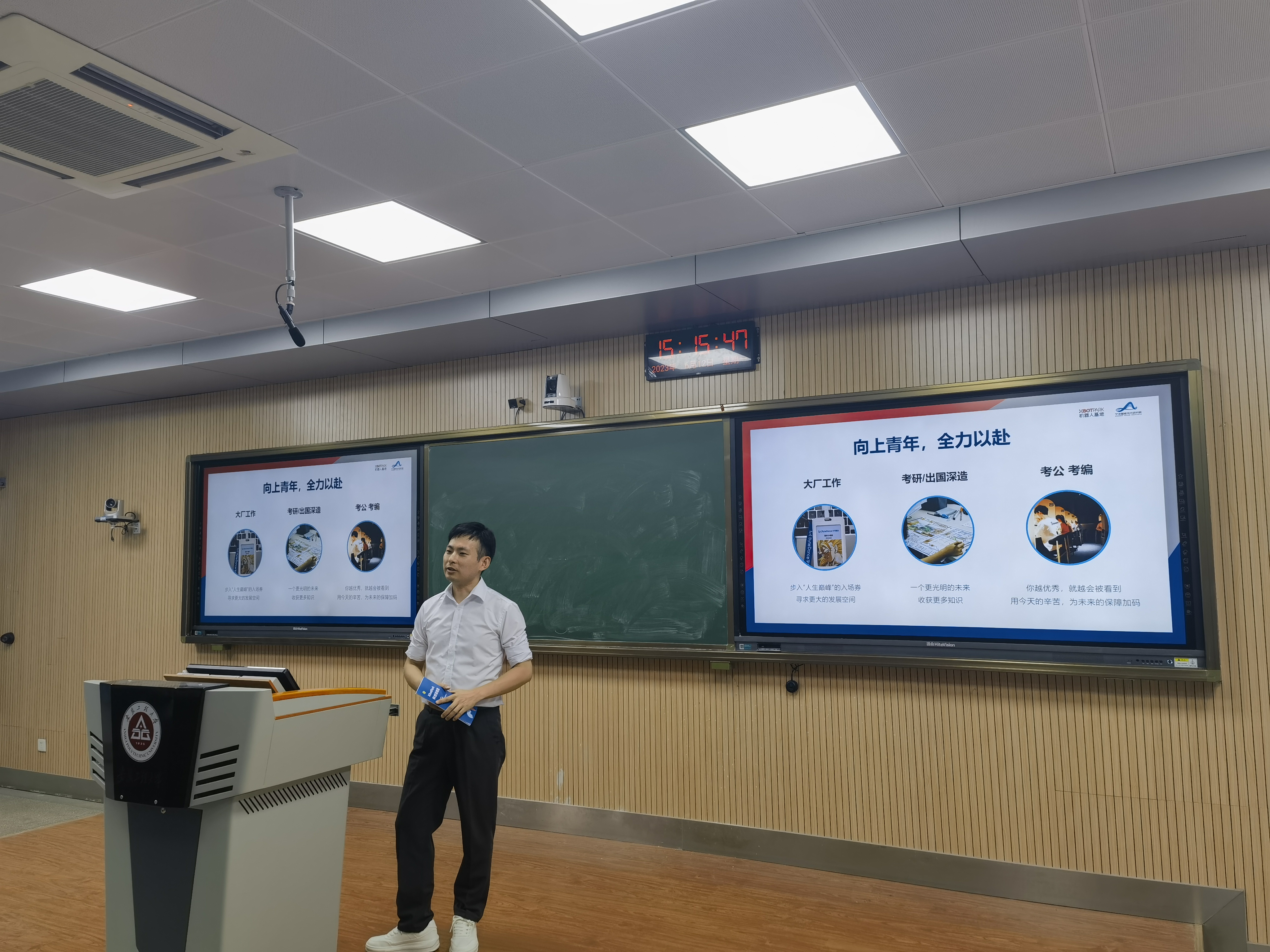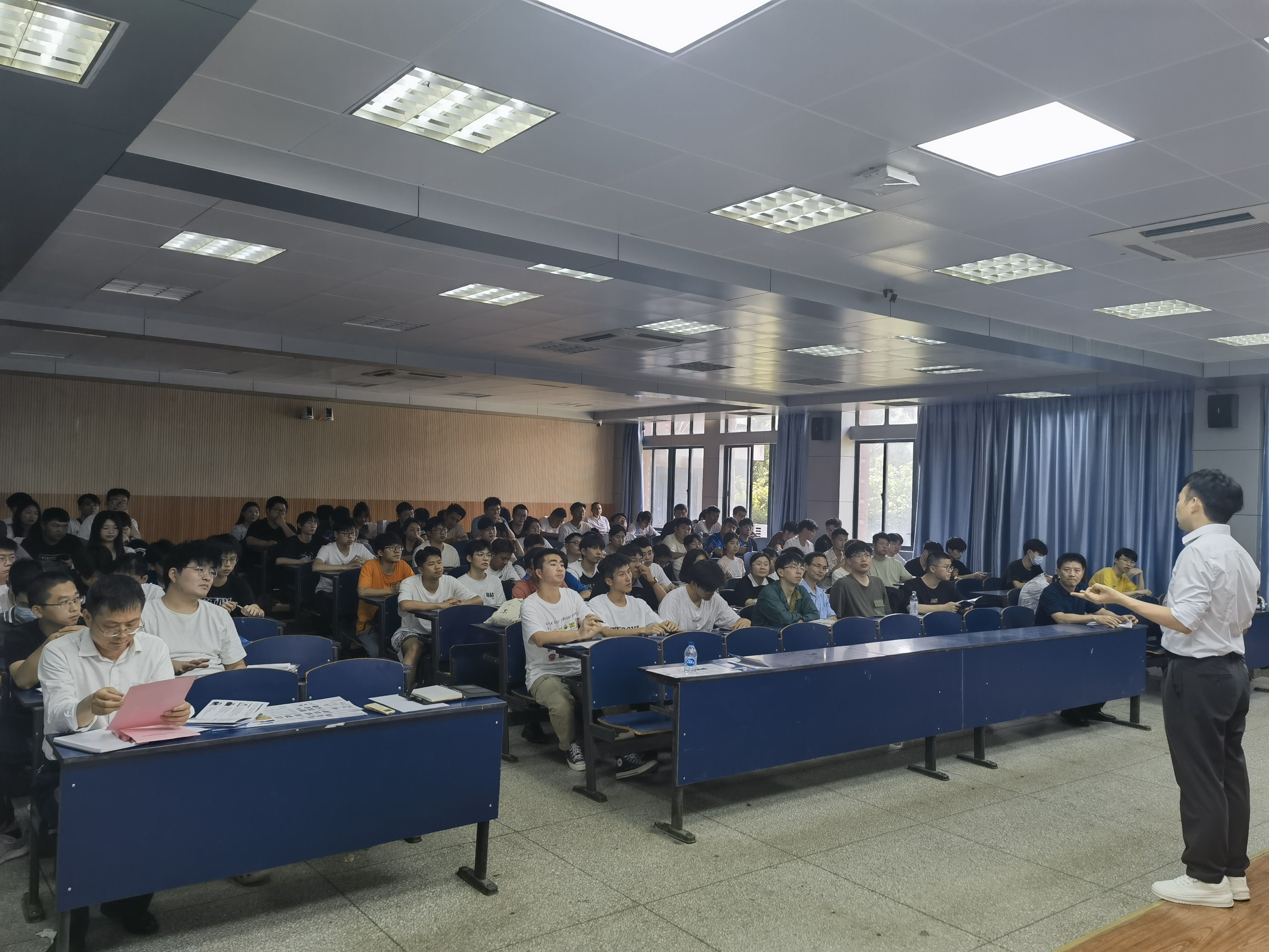 6月12日下午,在5号教学楼116室举行了主题为“学生时代科技创新成果转化的最后一公里”的科创宣介会。宣介会由宁波智能技术研究院项目经理沈殷波主讲,一百多名学生代表、学科与技能竞赛指导教师代表、芜湖市科技局平台基地建设科负责人、学校教务处负责人及相关工作人员参加活动。