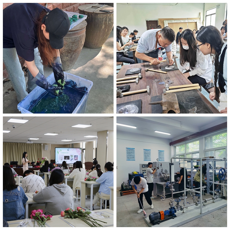 发挥专业优势,打造“劳动+专业”。纺织服装学院开展以“趣味扎染,妙‘布’可言”为主题的非遗扎染活动;外国语学院开展铁画非遗文化传承劳动教育实践活动,增进了优秀传统文化的传承与国际传播,进一步增强了当代大学生的文化自信;人文学院举办劳动教育实践“花艺社工行”插花DIY活动;化学与环境工程学院开展“新生企业行——观劳模精神”、“校园劳动实践”主题系列活动;机械与汽车工程学院结合专业开展了“劳动教育实践——智能机电技术实训劳动”系列实践活动。