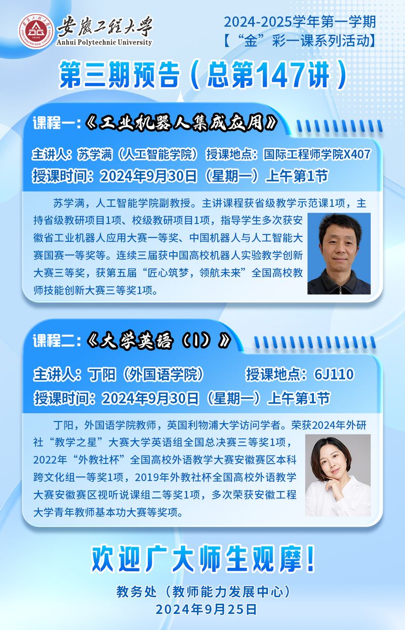 2024-2025学年第一学期【“金”彩一课系列活动】第三期预告(总第147讲)