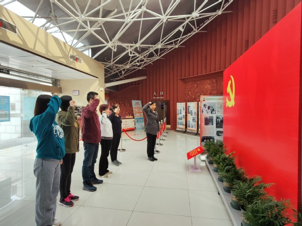 “我志愿加入中国共产党,拥护党的纲领,遵守党的章程,履行党员义务,执行党的决定,严守党的纪律,保守党的秘密,对党忠诚,积极工作,为共产主义奋斗终身,随时准备为党和人民牺牲一切,永不叛党!”在烈士陵园纪念馆大厅,面对鲜艳的中国共产党党旗,继续教育学院党支部全体党员高举右拳,重温入党誓词,铮铮誓言响彻纪念馆。