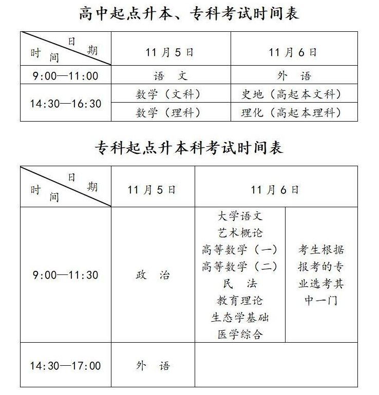 专科起点升本科(按照专业所隶属的学科门类确定)