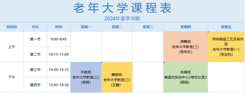 老年大学2023年在学员们快乐的学习中圆满结束,学员们在这一年学习充实,生活愉悦。新的一年,新的学期,各位学员朋友们,老年大学2024春季课程开始啦,欢迎各位老学员继续报名,也欢迎新的学员加入老年大学,让我们一起开启新的学习旅程吧!