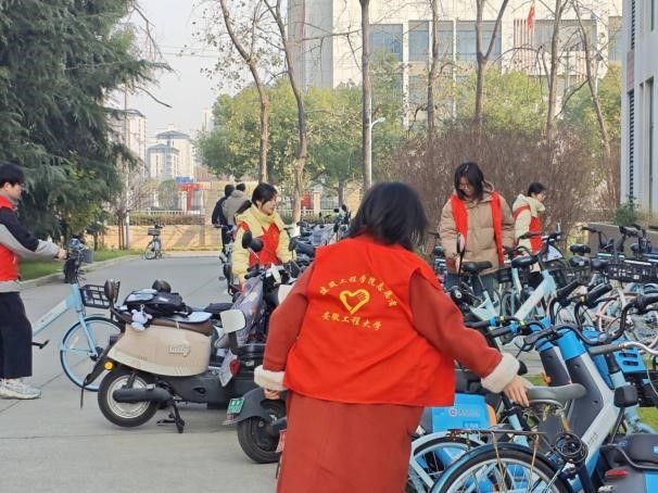 建筑学专业学生党支部开展“齐整单车阵,共享有序行” 主题党日活动