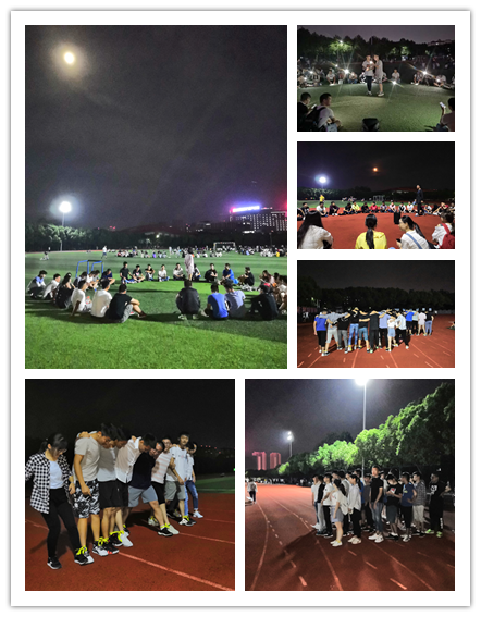 工程181182、给排水182、土木184在第二田径场举办了自己的户外中秋活动。给排水182在将班级同学分成四组,每组十名同学把腿绑在一起,相互配合下一起前进。工程181182班级同学,大家围坐一个圈,每个同学依次将前面所有同学的名字说出。土木184班级将每个同学的名字写在卡纸上,班级同学随机抽到姓名后找出该同学。这些活动让新生们彼此更进一步认识与熟悉,大家在户外一边赏月,一边进行着活动,其乐融融。