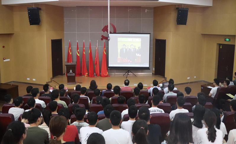 大会在庄严的国歌声中开始。会上举行了隆重的入党宣誓和重温誓词仪式。全体党员在领誓人赵宏的带领下,举起右手,面向党旗庄严宣誓。现场声音铿锵有力,感情饱满,浓浓的爱党爱国之情激荡着即将离校、奔赴前程的赤子之心。