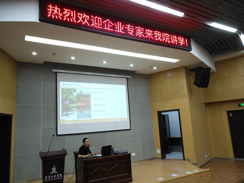 6月20日下午,应建筑工程学院给排水科学与工程专业邀请,启迪水务集团有限公司区域运营经理兼芜湖市城南污水处理厂厂长鲍玉鼎和安徽斯瑞菱智能科技有限公司总经理许金生在C座3楼报告厅分别作了题为《城市水生态治理及智慧水务》和《物联网技术在水行业的应用》的学术报告。两场报告分别由给排水专业负责人徐晓平和张明博士主持。建筑工程学院给排水专业部分教师、给排水专业2015级和2016级本科生参加了此次报告。