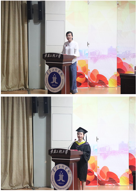 教师代表建筑学专业李茜为毕业生寄语,表达了老师对同学们的期望与祝福,希望同学们在离开校园以后的日子中,做一个有节气的人、做一个爱奋斗的人、做一个善良的人,忠于祖国、脚踏实地,拼搏创造属于自己的幸福人生,永远都是建筑工程学院的骄傲!