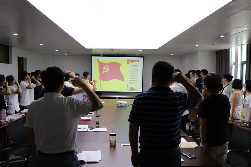 为了进一步净化党员的心灵、全面增强党员干部为人民服务的光荣感、责任感和使命感,始终恪守入党承诺、始终做到对党绝对忠诚,7月3日下午,学院党委组织全体党员开展“重温入党誓词”活动。全体党员在领誓人的带领下,面向中国共产党党旗重温入党誓词。大家举起右拳,庄严宣誓,深切表达了不忘初心跟党走,牢记使命永远奋斗的决心。
