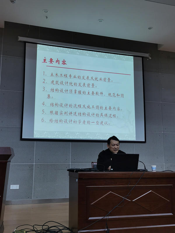 为进一步提高本科教学培养质量,学院土木工程系分别于2019年12月27日、2020年1月4日组织召开了两场生产实习的专家报告会。报告会邀请了安徽宝翔建设集团有限责任公司工程中心生产副总经理张红卫和中铁时代建筑设计院有限公司高级工程师徐勇作专题报告。土木系教师以及2016级土木工程专业同学参加了报告会。