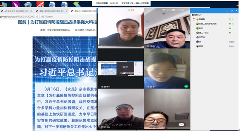 在讨论环节,党员同志们各抒己见,总结自己在抗击疫情中的担当,共同交流了开学至今在线上教学和线上办公的经验和体会,讨论接下来疫情期间的工作和学习计划。所有党员都表示作为一名党员,一定会做到听从党中央和上级党委统一指挥、统一协调、统一调度,做到令行禁止。在疫情防控斗争中积极践行初心和使命、体现责任和担当。相信,在党中央坚强有力的领导下,在全校师生的共同努力下,完全有信心打赢这场疫情防控阻击战。