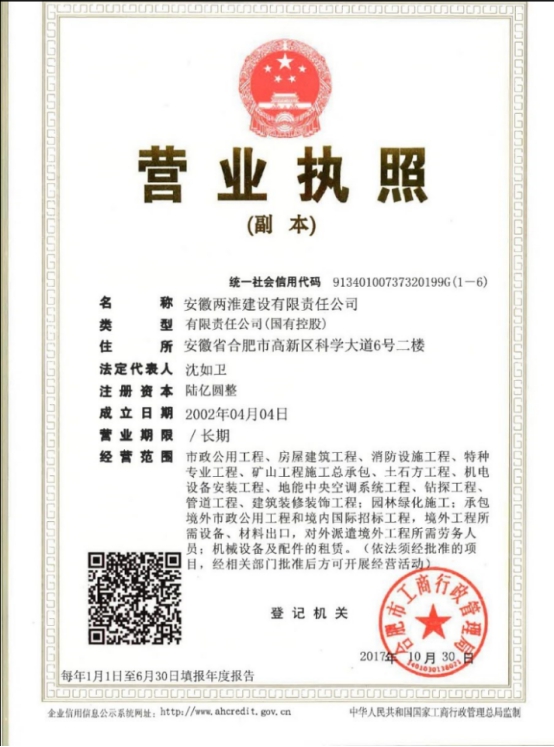 集团公司下属建筑业资质主要有:市政公用工程施工总承包(一级)、房屋建筑工程施工总承包(一级)、矿山工程施工总承包(三级)、地基基础工程施工专业承包(一级)、建筑机电设备安装工程施工专业承包(一级)、消防设施工程专业承包(一级)、建筑装修装饰工程施工专业承包(二级)、工程勘察专业类(水文地质勘察、岩土工程)乙级。