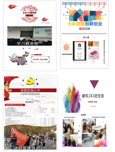 在思想引领方面,建筑191和土木192的团支部展示了学习习近平新时代中国特色社会主义思想和党的十九大方面的活动与记录图片,并结合各团支部特点开展团员思想教育评议等活动,做好思想引领工作。在组织建设方面,土木191和建筑192的团支部展示了班团一体化建设成果,团支部组织建设完备,支部委员配备完整,平时活动团员参与度高,成效明显。在学风建设方面,建筑182和工程182团支部用短视频展示了同学们刻苦学习的精神,一张张荣誉证书证明了他们在各类学科竞赛所取得的优异成绩。在创新创业方面,土木184和工程192成员展示了支部成员积极参加各类创新创业实践活动,获得各类竞赛奖项,参加合力杯项目和创业意识培训,有的同学还在线上平台进行自主创业,并取得一定收益。在志愿服务方面,给排水191和建筑181团支部成员有强烈的志愿服务意识,全体团员为注册志愿者,制定了团支部志愿活动准则,大家利用课余时间积极参加“团百花”学雷锋等志愿服务行动,奉献自我、完善自我,实现自我在志愿活动中的人生价值。在社会实践方面,给排水192和土木183团支部积极引导组织成员参加各类社会实践活动,加强团员的思想意识和实践创新能力。在新媒体建设中,工程181团支部展示了新媒体组织运营方式和作用发挥情况,通过思维导图的形式展示了他们在新媒体工作的成效。