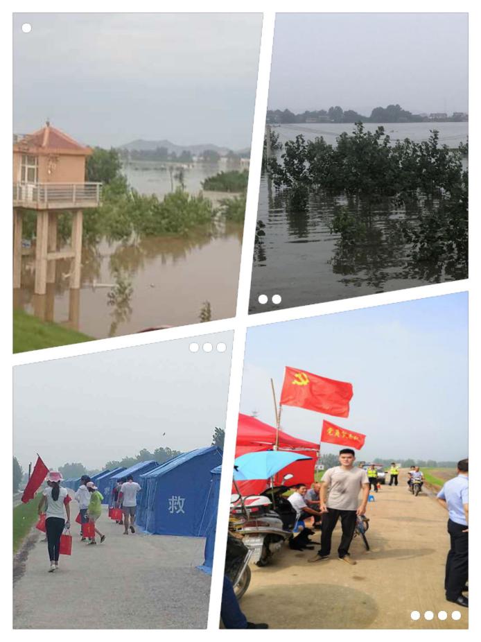 当地政府采取了许多措施来应对此次洪灾,团队成员土木182的孙恺、土木183的刘汶、黄涛、汪顺义主动报名争做家乡防洪志愿者。他们的主要工作是堤坝巡逻,早上六点准时到达提前安排好的帐篷点,换上雨靴拿上铁锹,跟着领队去规定的路线巡视检查。巡视过程中要观察堤坝外侧是否出现破裂的迹象,堤坝内侧是否有水从坝体渗透进来,每三个小时巡视一次,第二天早上6点才可以交班回家。虽然很辛苦,但为了自己的家乡安全,大家都很重视,咬牙坚持了下来,圆满的完成任务。