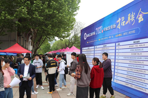 为扎实做好2021届毕业生就业工作,拓展毕业生就业渠道,积极为用人单位与毕业生搭建就业双选平台,建筑工程学院于4月21日下午在师生活动中心广场举办了2021届毕业生春季专场招聘会。